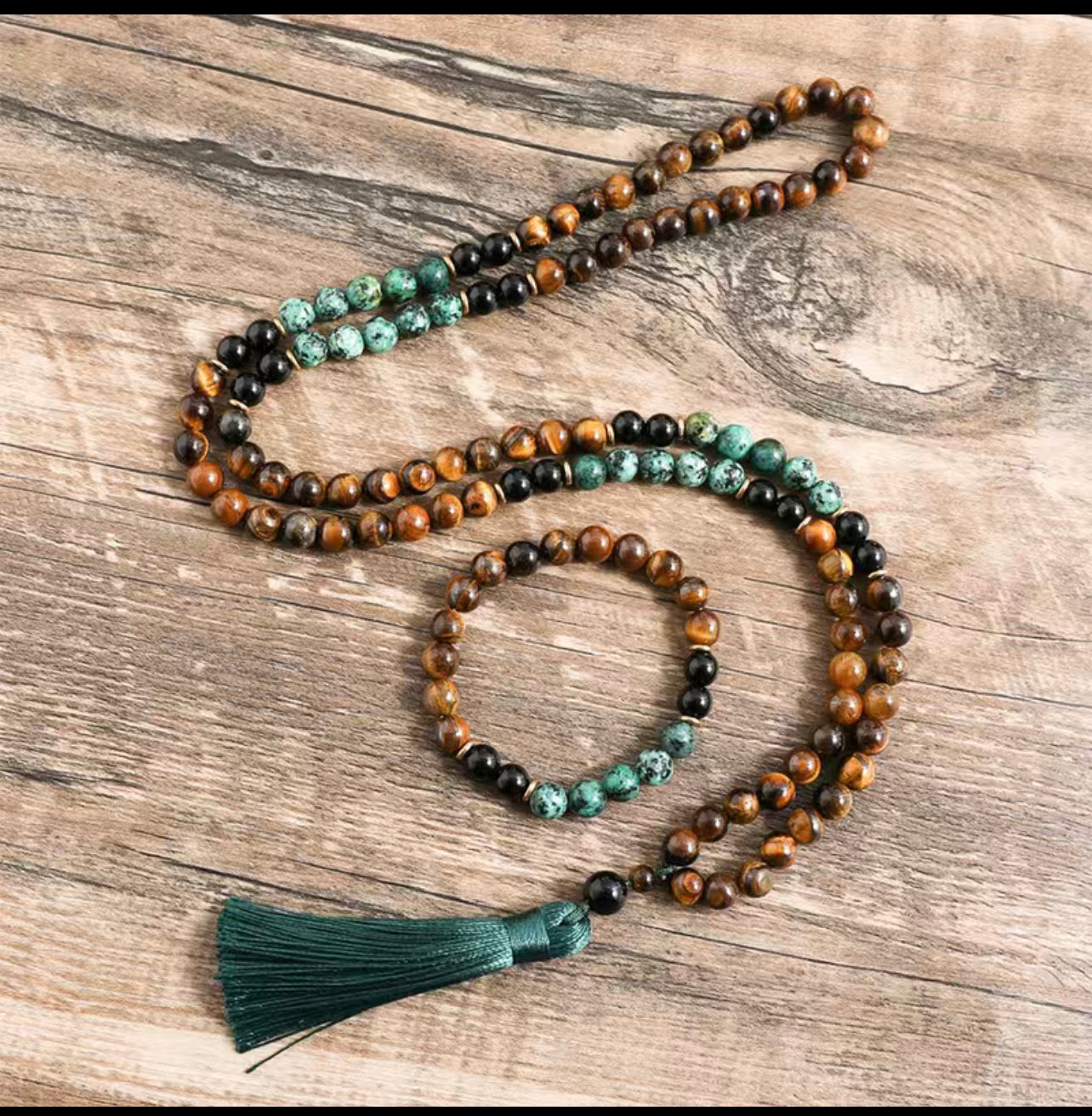 Tiger Eye & Onyx Necklace Set With Bracelet set